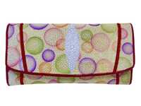 Genuine stingray leather wallet white color with color circles print