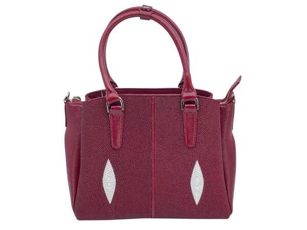 Сlassical wallet from genuine stingray leather, wallet with coin pocket crimson color.
