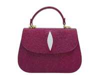 Women's bag made of genuine stingray leather. The top of the bag has a handle; the distance from the top of the bag to the handle is 9 cm. The bag is equipped with a removable shoulder strap. Inside of bag, there are pockets with zippers and a flat patch pocket. Soft fabric used as a lining material.