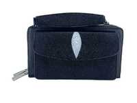 Women’s clutch from genuine stingray leather, small women’s bag from stingray skin black color, two zip clutch from stingray leather with outer pocket
