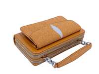 Women’s clutch from genuine stingray leather, small women’s bag from stingray skin brown color, two zip clutch from stingray leather with outer pocket