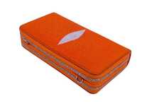 Women’s clutch from genuine stingray leather, small women’s bag from stingray skin orange color, two zip clutch from stingray leather.
