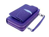 Women’s clutch from genuine stingray leather, small women’s bag from stingray skin purple color, two zip clutch from stingray leather with outer pocket
