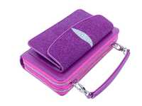 Women’s clutch from genuine stingray leather, small women’s bag from stingray skin purple color, two zip clutch from stingray leather with outer pocket