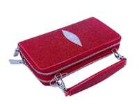 Women’s clutch from genuine stingray leather, small women’s bag from stingray skin red color, two zip clutch from stingray leather.