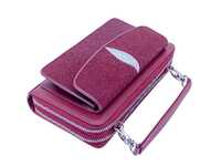Women’s clutch from genuine stingray leather, small women’s bag from stingray skin wine color, two zip clutch from stingray leather with outer pocket