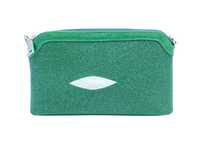 Women's clutch with a zipper made of genuine stingray leather. Women's clutch-wallet made of large-grain stingray leather. This clutch model is equipped with a removable shoulder strap made of calfskin. The length of the shoulder strap is 130 cm. Inside of clutch there are convenient pockets - a double patch pocket and a zippered pocket. Soft fabric used as a lining material.