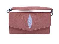 Small bag for women, or women’s clutch, for manufacturing of this product used genuine stingray hide. Stingray skin with large grain texture, soft and flexible. On main surface located white-eye. Bag equipped detachable handle and shoulder belt. Inside of this clutch have compartments for banknotes, documents and phone. Inside of bag located zip pocket and slots for cards.