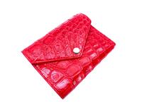 This is new model of vertical crocodile skin wallet, this woman's type of wallet. Wallets of this model keep up with the times, small compartment for cash, a few card slots, very cozy and convenient. On the side of wallet has flap with stainless steel button. For manufacturing of this wallet used genuine crocodile leather belly part. On the left side of wallet has convenient pocket with zip, this pocket can be used as a coin or pocket for another small items.