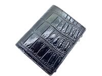 One more popular and convenient model of crocodile skin vertical wallet with outer zip pocket. Women and men can use this wallet. For manufacturing of this wallet, we used belly part of genuine Siamese crocodile skin. Wallet made from one whole piece of crocodile skin, what increase value of this wallet. Crocodile skin soft, elastic, and high quality of dressing. Vertical bifold from crocodile skin. Wallet consist from; two banknotes compartment, four card slots, two sides pocket with assess from middle part of wallet, on the side of the wallet has convenient pocket with zip what can be used as a pocket for coins or another small items. Soft calfskin and textile used as lining material.