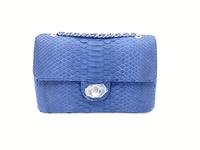 Python snake skin shoulder bag Chanel midi, made from genuine python snake leather. This model of bag manufactured in the shape of the famous Chanel bag, but does not have Chanel labels, just a copy of the popular and convenient shape. This shoulder bag is made in a comfortable midi size, quite spacious for a standard long wallets such a tri-fold long wallet or long zip wallet about 20cm long. There is a convenient patch pocket for a Smartphone inside this bag. The width of the pocket for the phone is 17 cm, which allows you to put a rather large modern Smartphone in this pocket. On the other side opposite to the patch pocket inside the bag there is a flat pocket with a zipper, zipper width 17cm. The chain design allows the bag to be worn on both the shoulder and forearm. The chain is braided with python skin, matching the color of the bag. Soft calfskin used as lining material