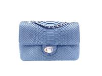 Python snake skin shoulder bag Chanel midi, made from genuine python snake leather. This model of bag manufactured in the shape of the famous Chanel bag, but does not have Chanel labels, just a copy of the popular and convenient shape. This shoulder bag is made in a comfortable midi size, quite spacious for a standard long wallets such a tri-fold long wallet or long zip wallet about 20cm long. There is a convenient patch pocket for a Smartphone inside this bag. The width of the pocket for the phone is 17 cm, which allows you to put a rather large modern Smartphone in this pocket. On the other side opposite to the patch pocket inside the bag there is a flat pocket with a zipper, zipper width 17cm. The chain design allows the bag to be worn on both the shoulder and forearm. The chain is braided with python skin, matching the color of the bag. Soft calfskin used as lining material