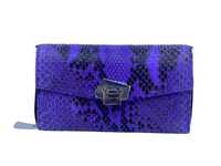Women's comfortable clutch made of genuine python leather. The front flap closes with a metal twist lock. Inside the clutch there are compartments for cards and banknotes and other compartments. A detachable shoulder strap is included with the clutch.