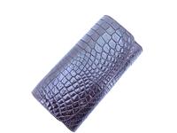 Handcrafted crocodile skin long wallet trifold for women. For manufacturing of this wallet used genuine Siamese crocodile skin, smooth leg part. Crocodile skin soft and elastic, high quality dressing skin. On backside of wallet located convenience flat pocket. Inside wallet, consist from two banknotes compartments, one flat zip pocket behind banknotes compartments and one flat pocket behind zip pocket. Thirteen card slots, two flat pocket located under the card slot row, one of this card slot has a transparent window. One fold of wallet closing on strap with button. Another one fold closing on the magnet button. Textile and soft calfskin used as a lining material.
