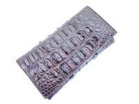 Handcrafted crocodile skin women’s long wallet with steel coin compartment. Trifold wallet, long trifold wallet another popular model of women’s crocodile skin wallet. For manufacturing of this wallet, used genuine Siamese crocodile skin middle part of crocodile tail. Crocodile skin high quality of dressing, skin soft and elastic. Wallet consist from 10 card slots one of card slot has a transparent window. Two flat sides pocket behind card slot row. One zip pocket. Three banknotes pockets. One coin pocket with steel frame. Wallet closing on the magnet button. Soft calfskin and textile used as a lining material.