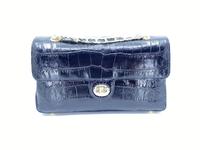 Crocodile skin handbag for women copy of Chanel bag. This bag is not replica of original Chanel bag, rather bag Chanel was a prototype for this model. On the main surface located flap with turn lock. On the top of bag located handle, this handle also can be shoulder belt. All sides of bag made from crocodile skin, face, back part, side parts, bottom part made from crocodile skin. Inner part of bag split for two volumes by flat pocket with zip. Inside of bag has two flat pockets, one of those pockets flat with zip, another pocket. Also inside of bag has two patch pockets. Calfskin used as a lining material.