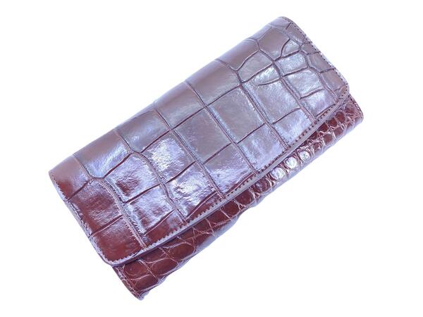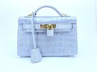 All parts of this handbag face surface, back surface, side parts, bottom part and handle made from smooth belly part of crocodile skin. Inner part of bag split for two volumes by flat pocket with zip. Calfskin used as a lining material.