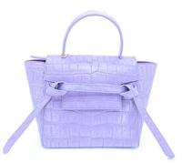 Siamese crocodile skin belly part women’s shoulder bag. As a main decoration on face of bag has decorative strap. On the top of bag has crocodile skin handle. On backside has rings for shoulder belt. On the face on handbag has flap. All sides of bag made from crocodile skin, main face, back part, side parts, bottom part, handle and shoulder belt also made from crocodile skin. Bag inside made in one volume, also inside of bag has zip pocket. Lining material made from calfskin. Detachable shoulder belt with crocodile skin facing at set.