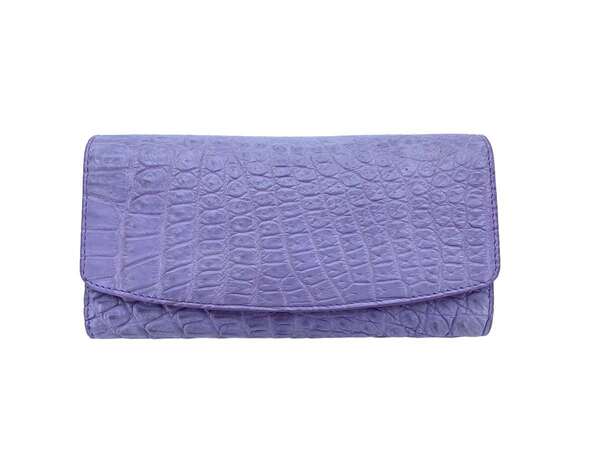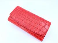 Long wallet for women trifold big size. For manufacturing of this wallet used belly part of genuine Siamese crocodile skin. This wallet is classical roomy wallet for those of you who prefer wallets with wide functional: 12 cards slots, two banknotes compartments, five long pockets one of those pockets with zip. Calfskin used as a lining material.