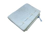 This is another one compact vertical wallet for men and women. This is quite popular model of bi-fold wallet. Wallet of this model has a side pocket with zip, which can use as a coins pocket or pocket to other small items. For manufacturing of this product used genuine Siamese crocodile skin. Skin soft and elastic. On main surface of wallet located hornback part of crocodile-hide, which becomes to the crocodile knee part on the backside of wallet. Both textures hornback and knee part has unique and expressive texture of natural crocodile skin. Wallet consist of two banknotes compartment, six card slots, and one side pocket with zip what can be used as a coin pocket or coins compartment or can use for other small items. Wallet closing on the button, Calfskin and textile used as a lining material.