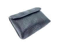 Crocodile skin shoulder bag. For manufacturing of this shoulder bag, we use genuine Siamese crocodile leather- knee part. On main surface located flap with magnet buttons. All side of bags made from knee part of crocodile skin. Shoulder bag equipped not detachable shoulder belt. Wide nylon strip use as a shoulder belt basement, for decoration of shoulder belt we use crocodile skin strip on the top of nylon. Calfskin and soft cloth use as a lining material, inside of this bag has two pockets. One pocket with zip and one more pocket on magnet button.