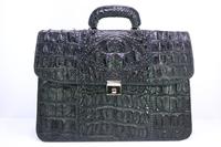 For manufacturing of briefcases of this model used GIANT genuine crocodile horn-back strips of hides of Siamese crocodile. On the front of the bag located upward opening valve decorated by natural texture and unrepeatable nape of hide of Siamese crocodile. Back side of this bag made from texture hornback of Siamese crocodile. On the top of back side of briefcase located convenient flat pocket. All seams and outer edges of this bag are braided by handmade. The internal volume is divided by flat pocket with zip on two compartments. Inside of bag located compartments for pens, phone and other necessities of life. Material of the lining is soft cloth and calfskin. Adjustable by length, detachable shoulder strap with braided edges and with decoration crocodile skin at set.