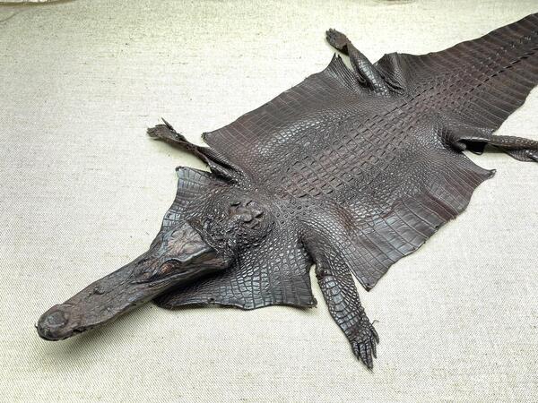 Crocodile leather back part with head and paws 30cm brown color 1572