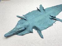 Crocodile leather back part with head and paws 31cm dark green color 1569