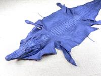 Crocodile leather back part with head and paws 31cm navy blue color 1559