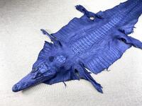 Crocodile leather back part with head and paws 35cm navy blue color 1556