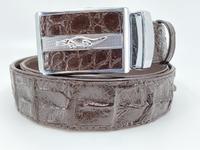Crocodile leather belt made from genuine Siamese crocodile hornback skin. As a main decoration on surface of belt used hornback crocodile skin, as a basement for this belts use genuine calfskin. Crocodile strap have a gluing of skin, gluing made very professionally and almost invisible. Belt equipped steel automatic buckle with crocodile shield on the middle of buckle. This crocodile belt can be used both men and women, but mainly this model targeted for men.