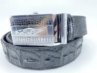 Crocodile leather belt made from genuine Siamese crocodile hornback skin. As a main decoration on surface of belt used hornback crocodile skin, as a basement for this belts use genuine calfskin. Crocodile strap have a gluing of skin, gluing made very professionally and almost invisible. Belt equipped steel automatic buckle with crocodile shield on the middle of buckle. This crocodile belt can be used both men and women, but mainly this model targeted for men.