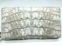 Crocodile leather wallet wit 1 zip – Large size. For manufacturing of wallets this model used genuine Siamese crocodile skin. Used crocodile skin soft and supple and high quality leather. As a main decoration used skin taken from middle part of tail of Siamese crocodile hide. Wallet opens 180 degrees, on the left side of wallets 8 card slots and two side pockets behind card slots. On the right side of wallet- 12 slots for cards, 1 flat pocket behind of card slots, 1 flat pocket with zip and 2 banknotes compartments around zip pocket. As a lining material used calfskin and textile.