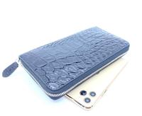 Crocodile leather wallet wit 1 zip – Large size. For manufacturing of wallets this model used genuine Siamese crocodile skin. Used crocodile skin soft and supple and high quality leather. On front surface of wallet used smooth side part of crocodile hide. On back side of wallet used knee part of Siamese crocodile hide, gluing of skin made very professionally and smooth and almost invisible. Wallet opens 180 degrees, on the left side of wallets 8 card slots and two side pockets behind card slots. On the right side of wallet- 12 slots for cards, 1 flat pocket behind of card slots, 1 flat pocket with zip and 2 banknotes compartments around zip pocket. As a lining material used calfskin and textile.