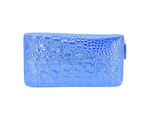 Crocodile skin bifold wallet with braided trim