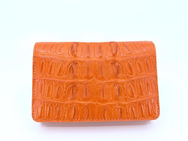 Genuine crocodile skin card holder. Card holder of this model is very convenient thing. Especially in case when you need to have with you only 2-3 cards and few banknotes. For example on vacation. Or this card holder will be loved by those of you who prefer minimalism style like: Id card, key-card, 1-2 bank cards and few banknotes - not over. For manufacturing of card holder of this model used high-end manufactured Siamese crocodile skin. As a lining material used cloth.