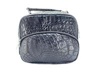 Crocodile skin vertical shoulder bag for men. For manufacturing of this handbag, we use genuine Siamese crocodile skin, knee part. Knee part of crocodile hide have a nice and unique texture of crocodile skin. On main surface of shoulder bag has convenient pocket with zip. In manufacturing process we use two-way zip and two zip heads on the top zip and two zip heads on the pocket on main surface of bag and exactly this will allow you carry this bag on the left or on the right shoulder. For more decoration of this handbag, in manufacturing process was use special calfskin cord around all outer perimeter on both sides of handbag and around pocket on the main face, this cord makes the handbag look more complete. All sides and parts of this shoulder bag made from crocodile skin, main surface, backside, side parts, bottom part, area around zip on the top of bag, handle and detachable adjustable shoulder belt also have crocodile skin strip on the top. Bag inside has only one pocket with zip. As a lining material use smooth cloth black color.