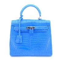 All parts of this handbag face surface, back surface, side parts, bottom part and handle made from smooth belly part of crocodile skin.