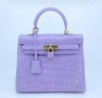 All parts of this handbag face surface, back surface, side parts, bottom part and handle made from smooth belly part of crocodile skin. Bag inside made in one volume. Inside of bag has one flat zip pocket and two patch pockets. Calfskin used as a lining material.