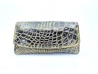 Long wallet trifold from crocodile leather made from genuine Siamese crocodile skin. For manufacturing of this wallet used soft and supple crocodile skin. Used part of skin knee of crocodile hide. This model of crocodile skin wallet is very popular model for women. On backside of wallet has a convenient flat pocket.