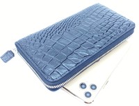 Crocodile leather wallet with zip from Siamese crocodile skin. For manufacturing of this wallet used high quality genuine crocodile leather. On the front side of wallet used crocodile skin with smooth side part, on backside of wallet used knee of crocodile. Skin gluing made very professionally. This crocodile skin wallet is medium size and can be used both men and women. Wallets of this model close on a metal zipper. Cloth part of zip same color of outer crocodile skin.