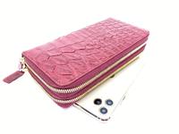 Two zips crocodile wallet made from genuine Siamese crocodile leather. For manufacturing of wallets of this model used soft and gentle high quality crocodile leather. On one surface of this wallet used smooth side part of crocodile hide, on another surface of this wallet used knee part of crocodile hide. This wallet also can be considered a crocodile skin clutch 2 zips. Clutch of this model equipped with a removable handle made from crocodile skin, crocodile skin handle made same color what clutch. Wallet consist from two independent compartments, each one compartment are closing on metal zip. One compartment of wallet includes 4 small compartments for such things us phone, documents, etc. Another zippered compartment includes: