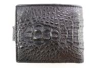 Genuine crocodile Caiman skin wallet with halt belt and coin compartment. For producing of wallets of this model used high-end leather manufactured skin of crocodile Caiman. Used part of crocodile hide is nape and back part. This wallet made from one whole piece of crocodile skin. On surfaces of wallet we can see how texture of crocodile skin is changing. Nape part becomes to the back part. Wallets of this model will be loved by those of you who prefer wallets of small size with good capacity with coin compartment and strap belt with button.