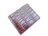 Classical model of crocodile skin wallet. For manufacturing of this, wallet used belly part of genuine Siamese Crocodile skin. Crocodile skin soft and supple. Wallets of this model unisex and can be used both, women and men. Wallet consist from two banknotes compartments, six card slots, four side pockets with access from middle part of wallet. Soft calfskin and textile used as a lining material.