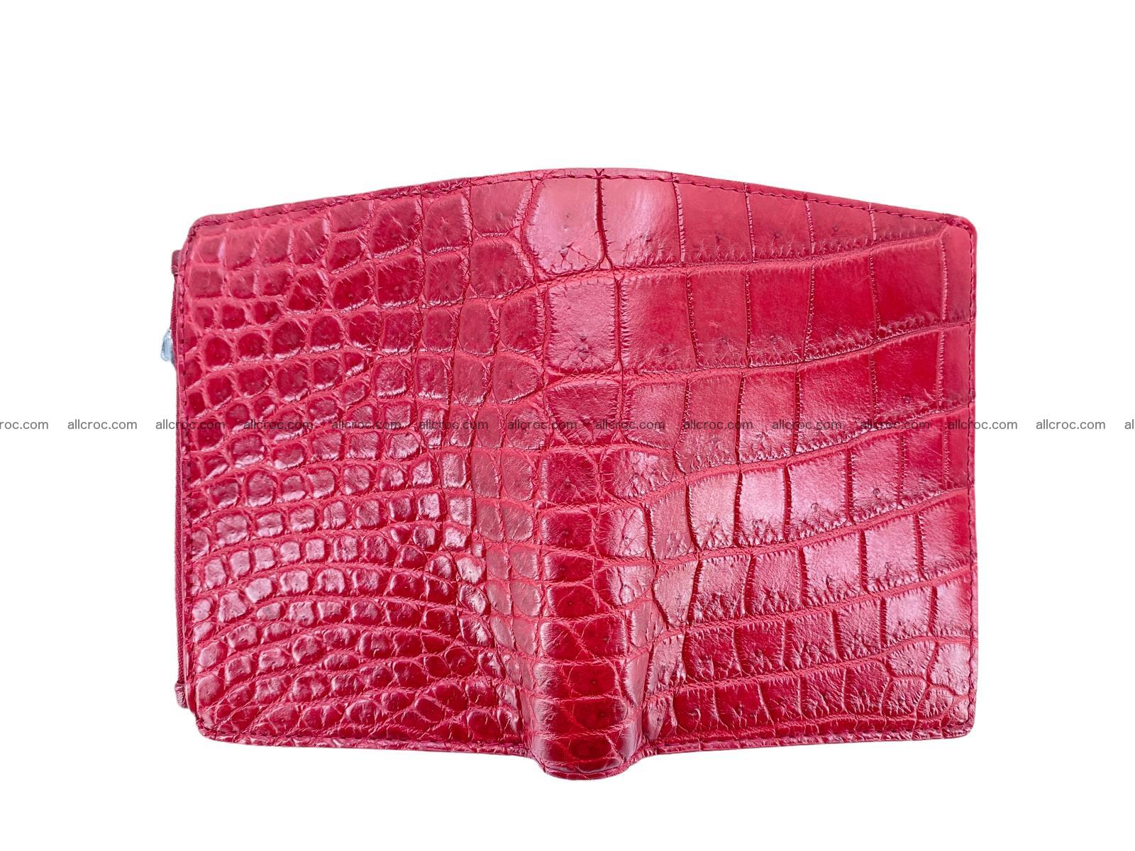 One more popular and convenient model of crocodile skin vertical wallet with outer zip pocket. Women and men can use this wallet. For manufacturing of this wallet, we used belly part of genuine Siamese crocodile skin. Wallet made from one whole piece of crocodile skin, what increase value of this wallet. Crocodile skin soft, elastic, and high quality of dressing. Vertical bifold from crocodile skin. Wallet consist from; two banknotes compartment, four card slots, two sides pocket with assess from middle part of wallet, on the side of the wallet has convenient pocket with zip what can be used as a pocket for coins or another small items. Soft calfskin and textile used as lining material.