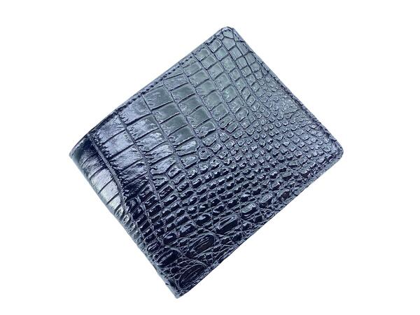 Classical model of crocodile skin wallet with coin pocket and strap. For manufacturing of this, wallets used belly part of genuine Siamese, skin soft and supple. This wallet made from one whole piece of crocodile skin, this increase value of this wallet. Wallets of this model unisex and can be used both, women and men. This wallet will be loved by those of you who prefer wallets with compartment for coins and outer strap. Coin pocket allow you to carry coins and use then every moment you need and outer strap keep wallet in closed condition and keeps it in shape. Wallet consist from two banknotes compartments, one zippered pocket in one banknote compartment, three card slots, one coin pocket and two side pockets. Soft calfskin and textile used as a lining material.