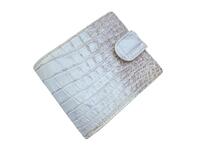 Classical model of crocodile skin wallet with coin pocket and strap. For manufacturing of this, wallets used belly part of genuine Siamese, skin soft and supple. This wallet made from one whole piece of crocodile skin, this increase value of this wallet. Wallets of this model unisex and can be used both, women and men. This wallet will be loved by those of you who prefer wallets with compartment for coins and outer strap. Coin pocket allow you to carry coins and use then every moment you need and outer strap keep wallet in closed condition and keeps it in shape. Wallet consist from two banknotes compartments, one zippered pocket in one banknote compartment, three card slots, one coin pocket and two side pockets. Soft calfskin and textile used as a lining material.