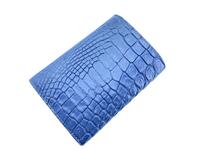 Classical crocodile skin wallet trifold for women, wallet equipped compartment for coins. For manufacturing of this wallet were used high quality genuine crocodile leather of Siamese crocodile, smooth and knee part of crocodile skin. Wallets of this model has a good functionality and will be loved by those of you who prefer wallets of average size that can be carried in even in small handbag. Wallet consist from one banknotes compartment, eight card slots, one ID slot with transparent window, one pocket for coins and fife extra side pockets. Wallet closing on the magnet button. Calfskin and textile used as a lining material.