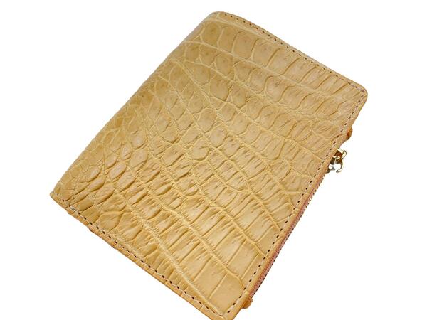 Classical crocodile skin wallet trifold for women, wallet equipped compartment for coins. For manufacturing of this wallet were used high quality genuine crocodile leather of Siamese crocodile, smooth and knee part of crocodile skin. Wallets of this model has a good functionality and will be loved by those of you who prefer wallets of average size that can be carried in even in small handbag. Wallet consist from one banknotes compartment, eight card slots, one ID slot with transparent window, one pocket for coins and fife extra side pockets. Wallet closing on the magnet button. Calfskin and textile used as a lining material.