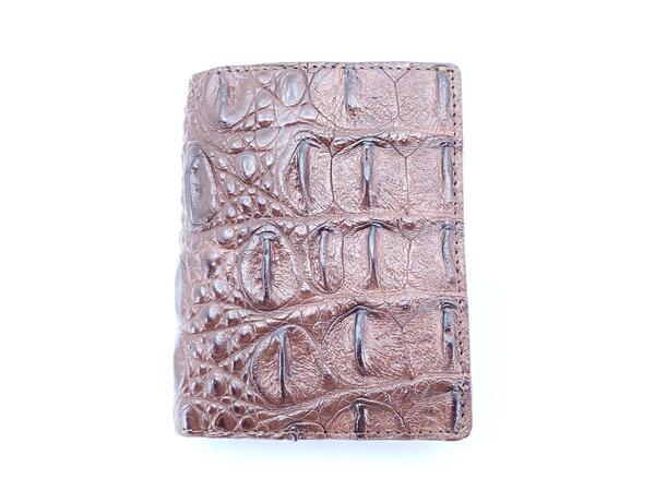 Classical crocodile skin wallet trifold for women, wallet equipped compartment for coins. For manufacturing of this wallet were used high quality genuine crocodile leather of Siamese crocodile, smooth and knee part of crocodile skin. Wallets of this model has a good functionality and will be loved by those of you who prefer wallets of average size that can be carried in even in small handbag. Wallet consist from one banknotes compartment, eight card slots, one ID slot with transparent window, one pocket for coins and fife extra side pockets. Wallet closing on the magnet button. Calfskin and textile used as a lining material.